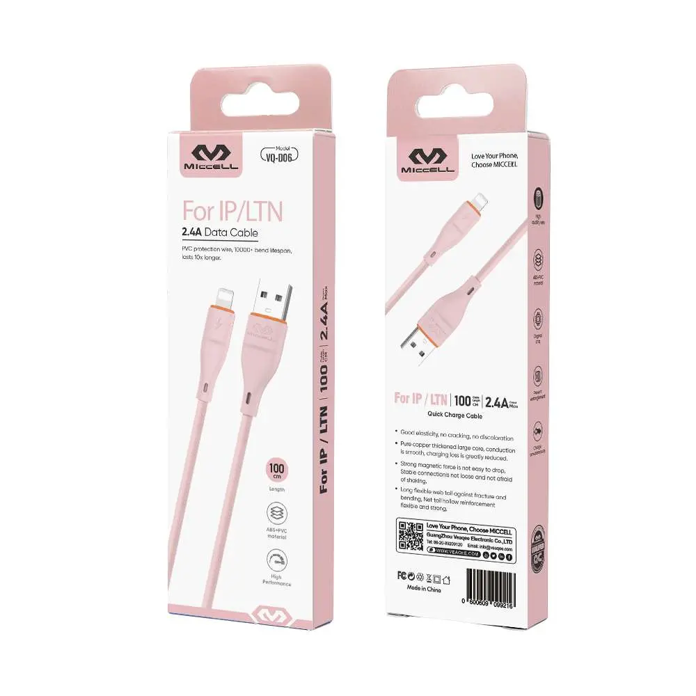 Combiná estilo y rendimiento con este Cable para iPhone Miccell D06 de 1,0 metro en color rosado (JTMICC086). Perfecto para quien busca un accesorio funcional que también aporte en la estética del dispositivo, este cable permite carga eficiente y transferencia de datos, manteniendo un diseño llamativo y delicado.
