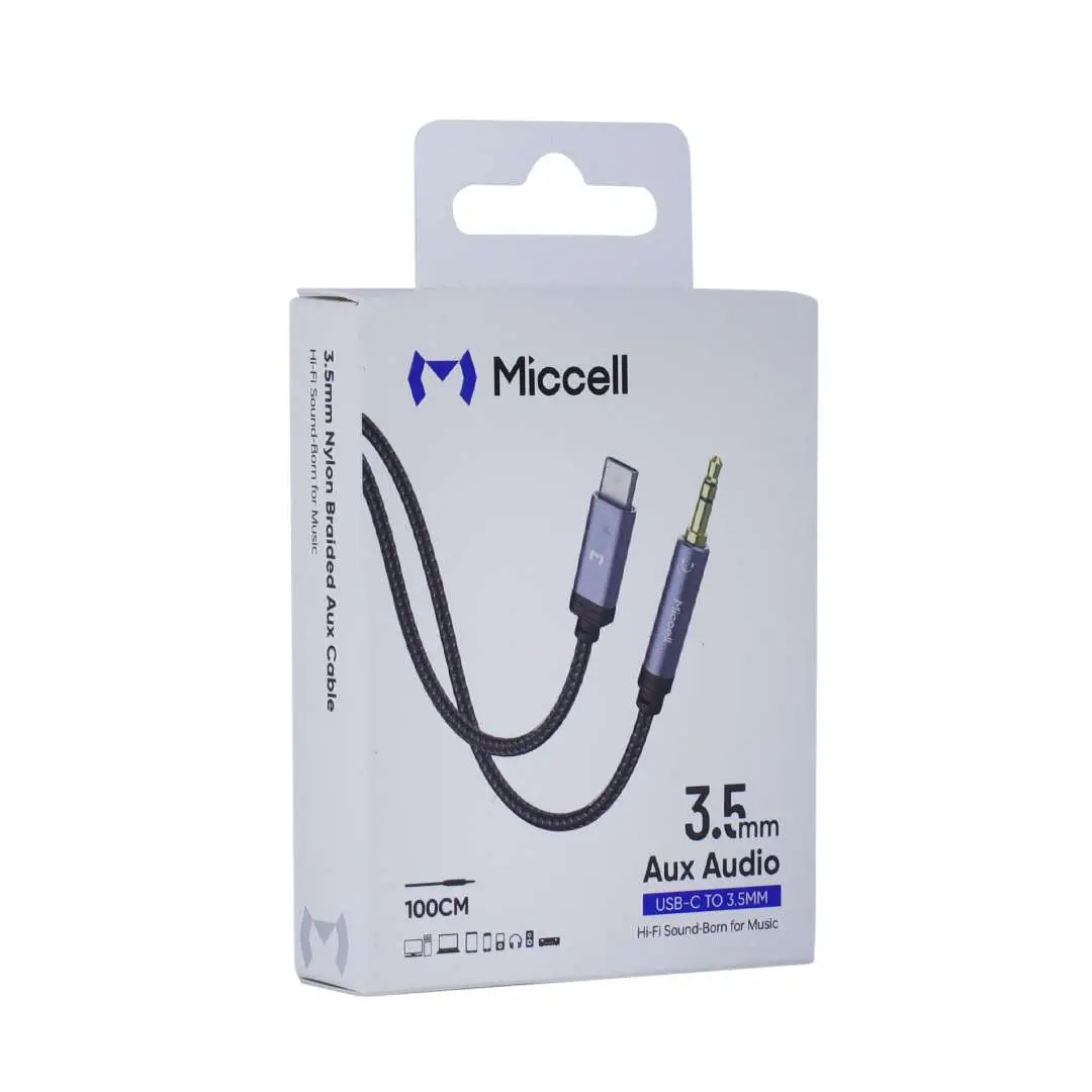 Conectá dispositivos con entrada de audio de 3,5 mm en equipos que solo cuenten con puerto USB-C utilizando este cable adaptador Miccell VQ-AUX002 en gris (JTMICC076). Ideal para celulares, tablets o laptops modernos, permite mantener la calidad de sonido original sin necesidad de adaptadores voluminosos.