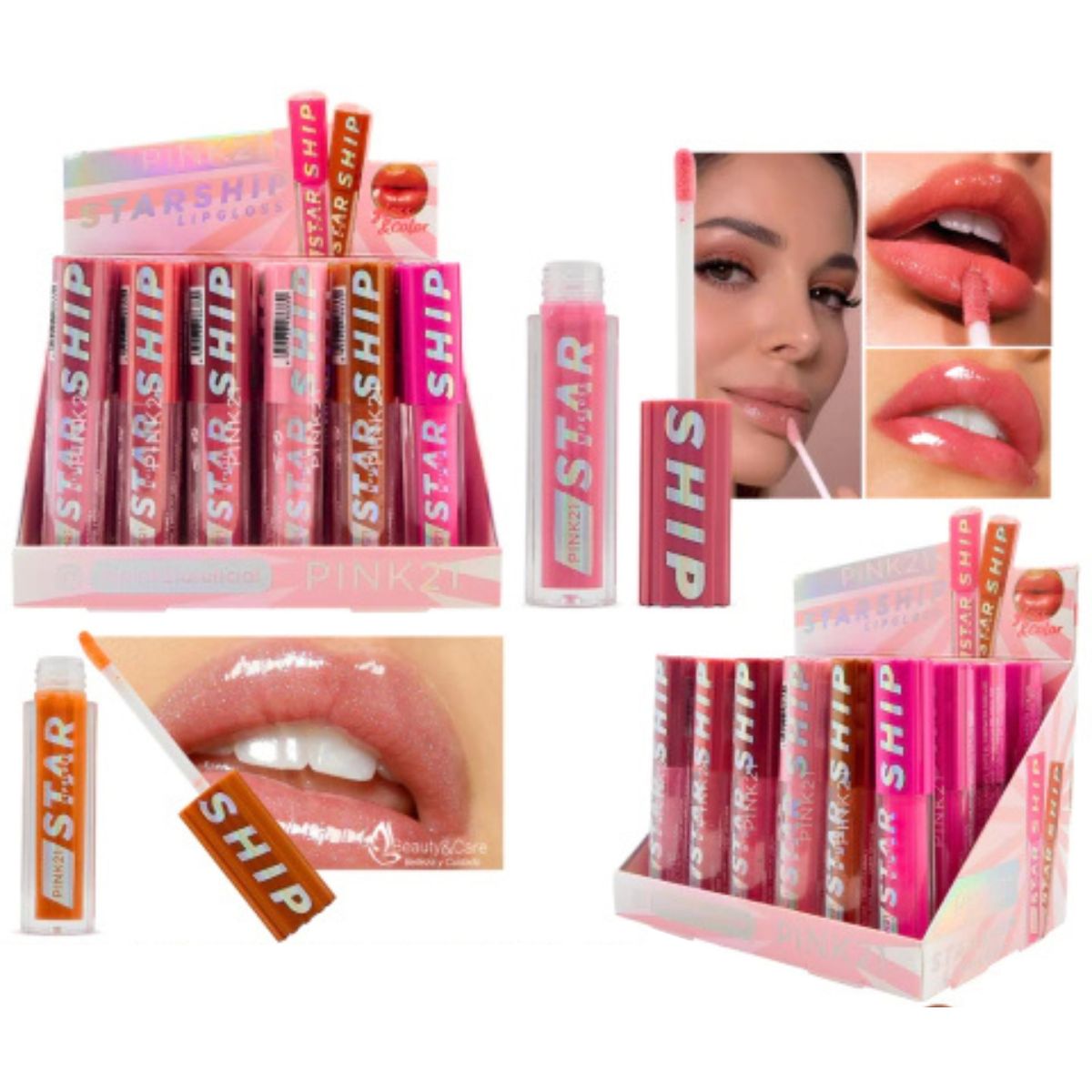 - Set de Tonos: El set incluye varios brillos de labios en una paleta de diferentes colores (tonos claros y fuertes).