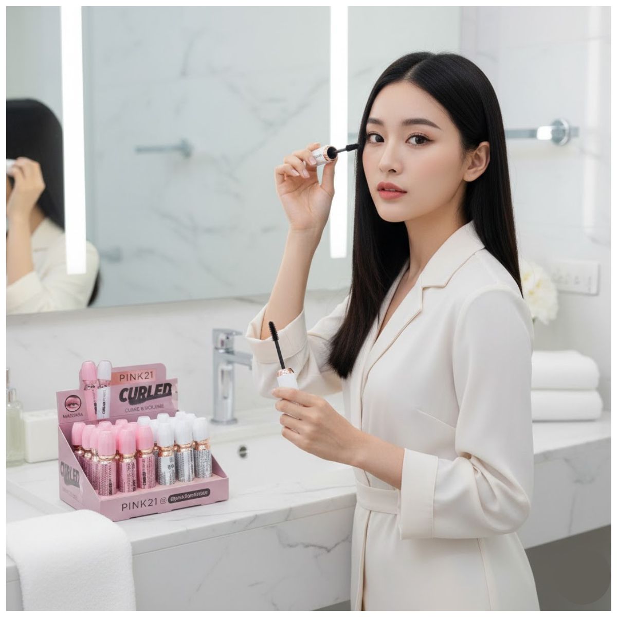 ¡La solución compacta que cabe en cualquier bolso! La Mascara de Pestaña Pink 21 - Curled, es pequeña pero increíblemente poderosa. Ideal para llevar a todos lados y lograr una mirada impactante con un solo retoque, sin sacrificar volumen ni definición.