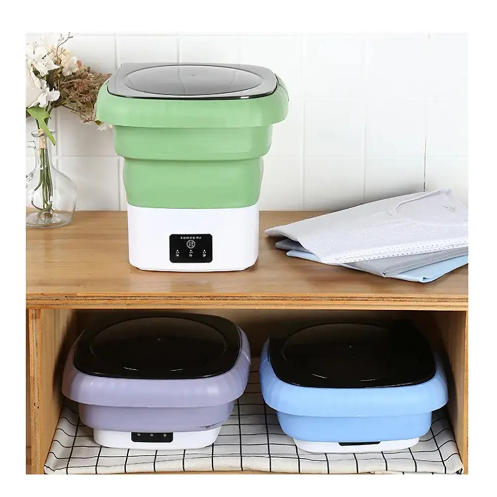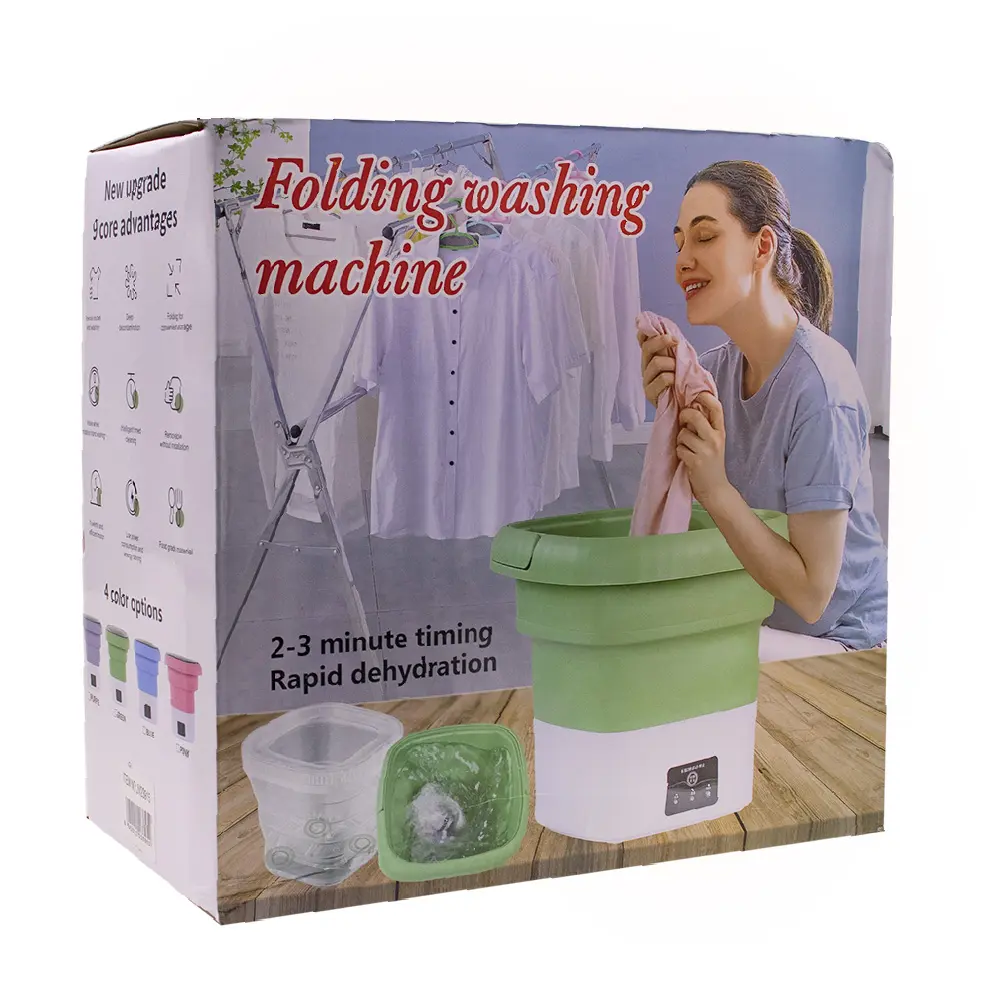 Ideal para espacios reducidos o viajes, este mini lavarropa plegable en tono violeta es la solución perfecta para lavar prendas pequeñas sin necesidad de una lavadora convencional. Su diseño compacto y funcional permite guardarlo fácilmente y usarlo en cualquier lugar con acceso a electricidad.