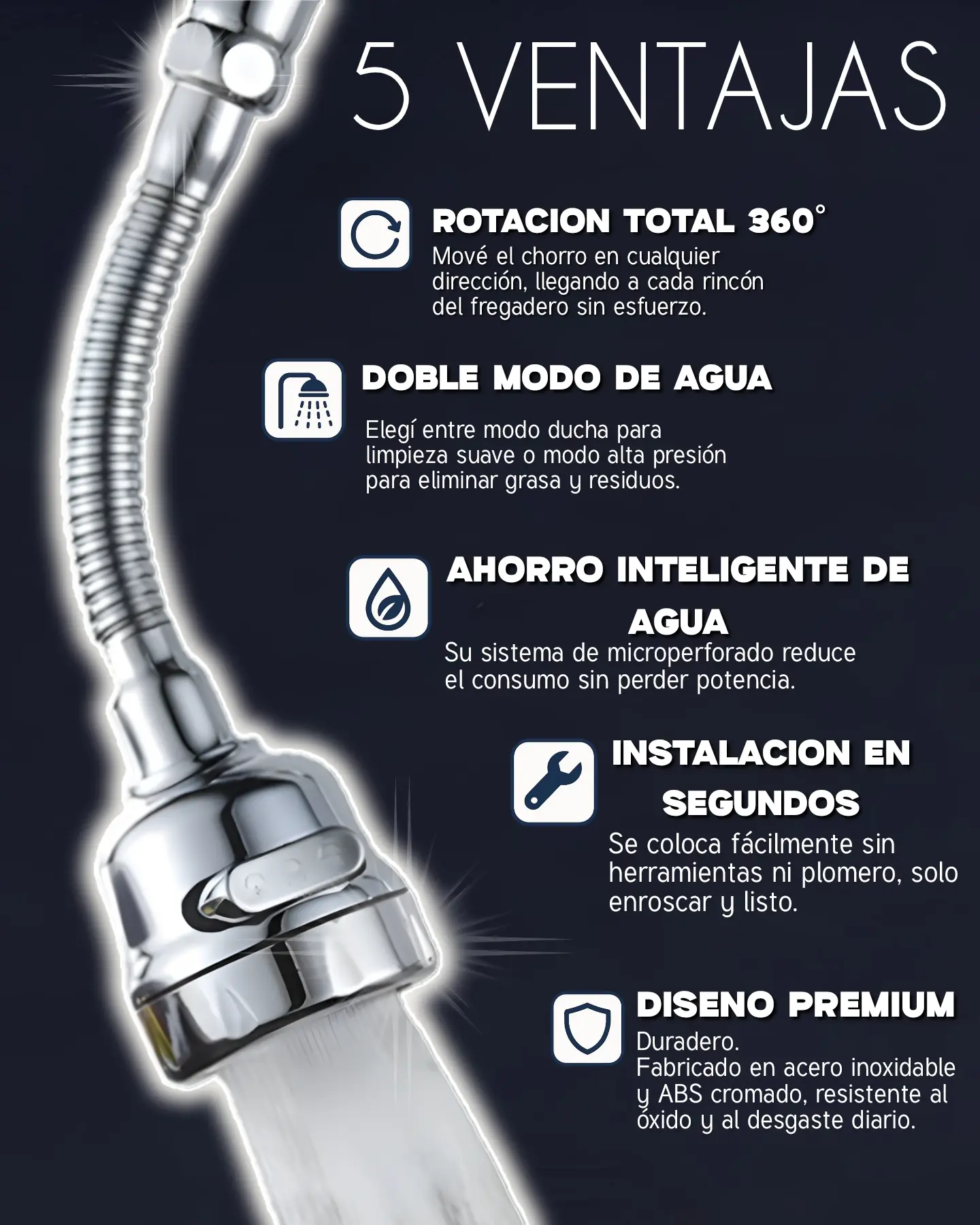 Grifo Canilla Flexible Adaptable 360°