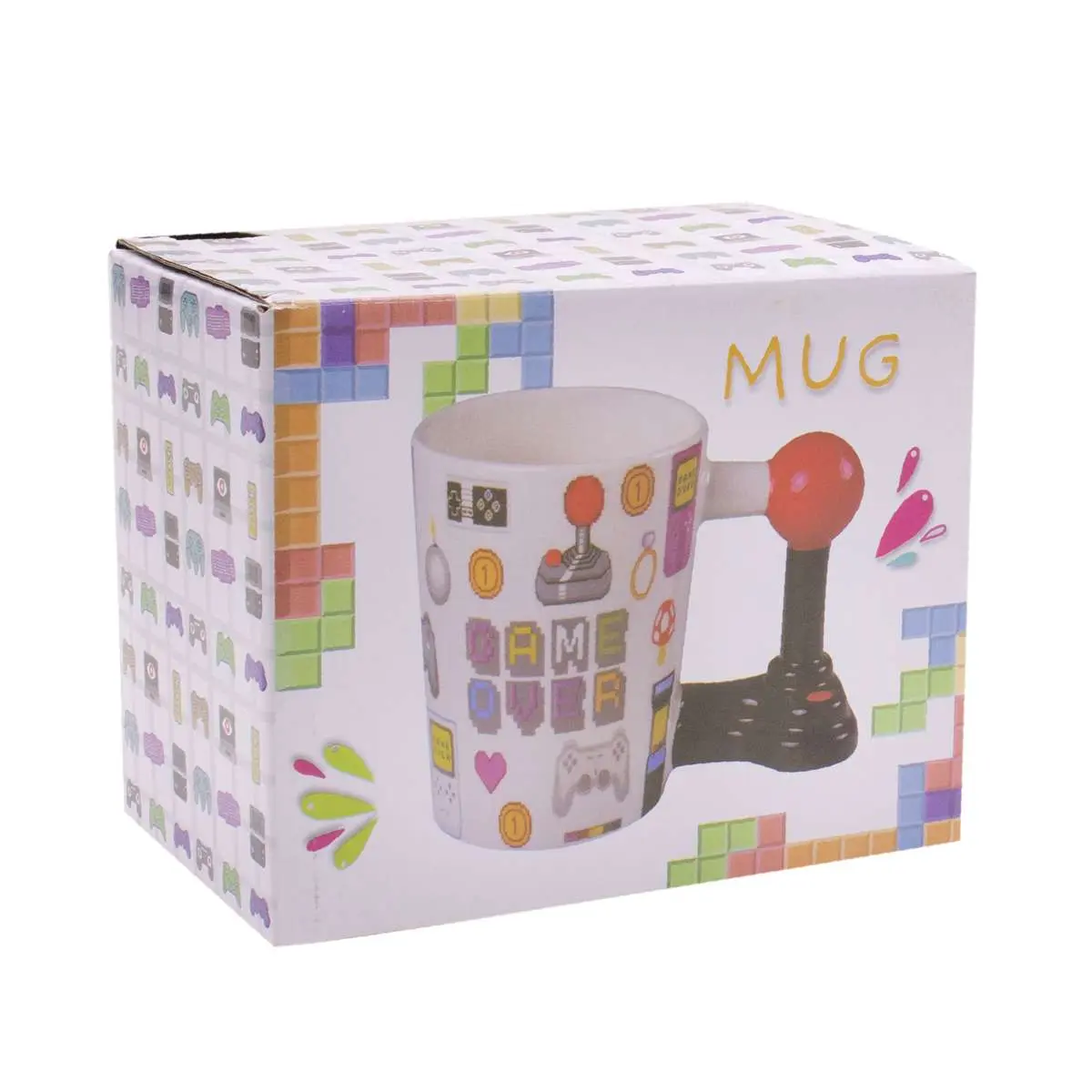 Disfrutá tus bebidas favoritas con estilo gamer gracias a esta taza de cerámica Game Over con agarre en forma de joystick. Ideal para café, té o chocolate, combina resistencia y diseño único, convirtiéndose en un accesorio divertido y decorativo para el hogar, oficina o regalos. Su material cerámico garantiza durabilidad y facilidad de limpieza, mientras que el agarre joystick ofrece un toque original que los fanáticos de los videojuegos van a amar.